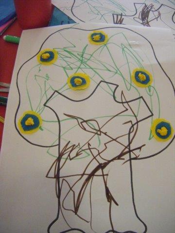 Pintámos também uma árvore da Primavera com marcadores e colamos flores.