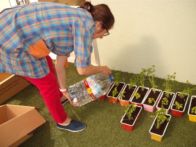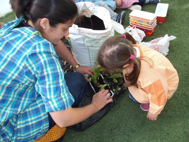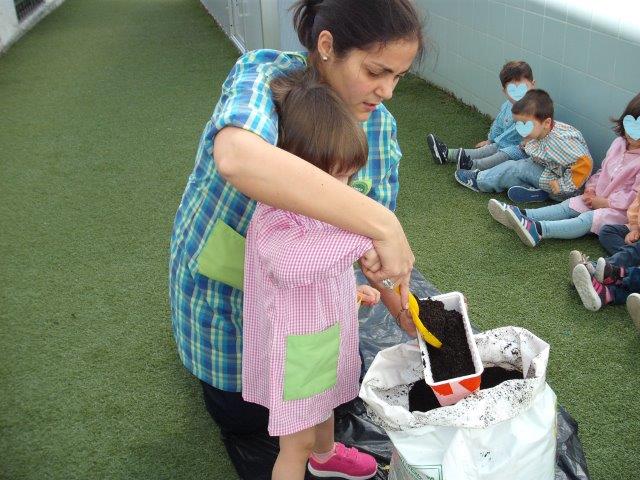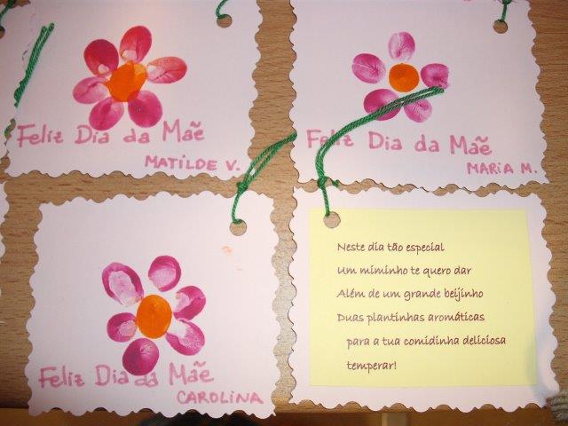 Com o Dia da Mãe a chegar, no primeiro domingo de maio, tivemos de ultimar a nossa super prenda. Depois dos vasos decorados, enchemos com terra e plantamos duas cheirosas ervas aromáticas para a mamã temperar as nossas comidas: salsa e mangericão.