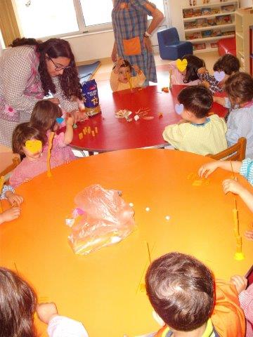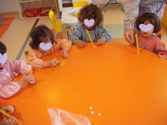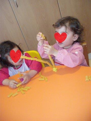Fizemos um jogo de enfiamentos muito divertido, com massas, esparguete e macarrão. Só foi pena o esparguete ser muito magrinho e partir facilmente com o peso das massas, ainda assim vejam como nos divertimos.