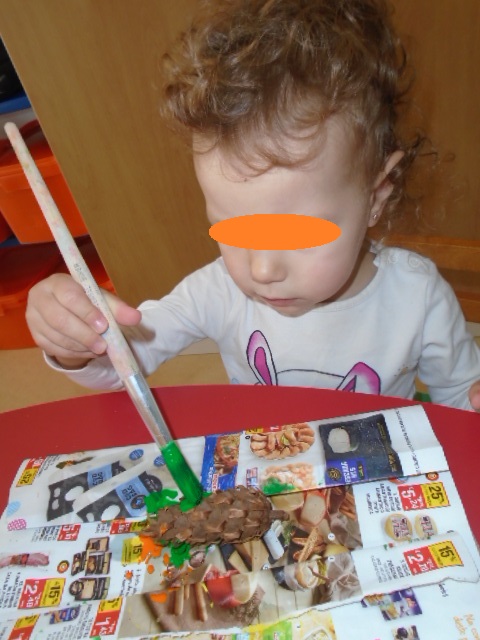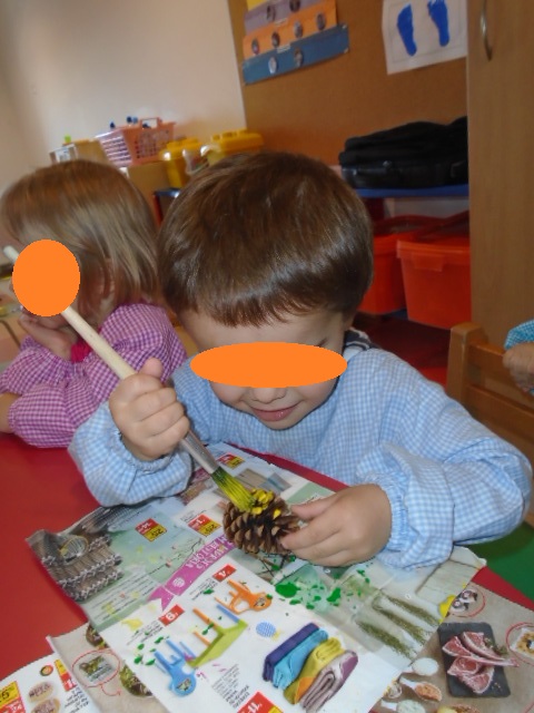 Com a chegada da nova estação do ano, começamos a fazer trabalhinhos porque somos nós a decorar o corredor da creche. Estivemos a pintar pinhas! Para já não contamos mais para depois verem como ficou.