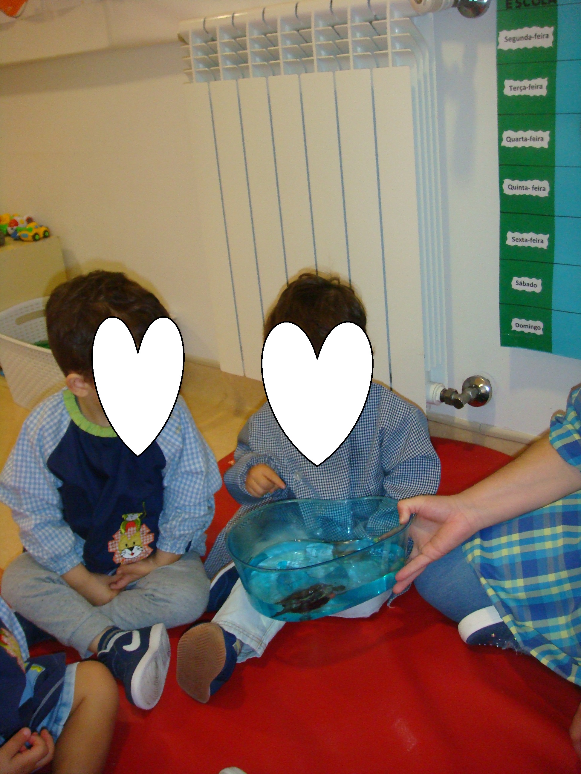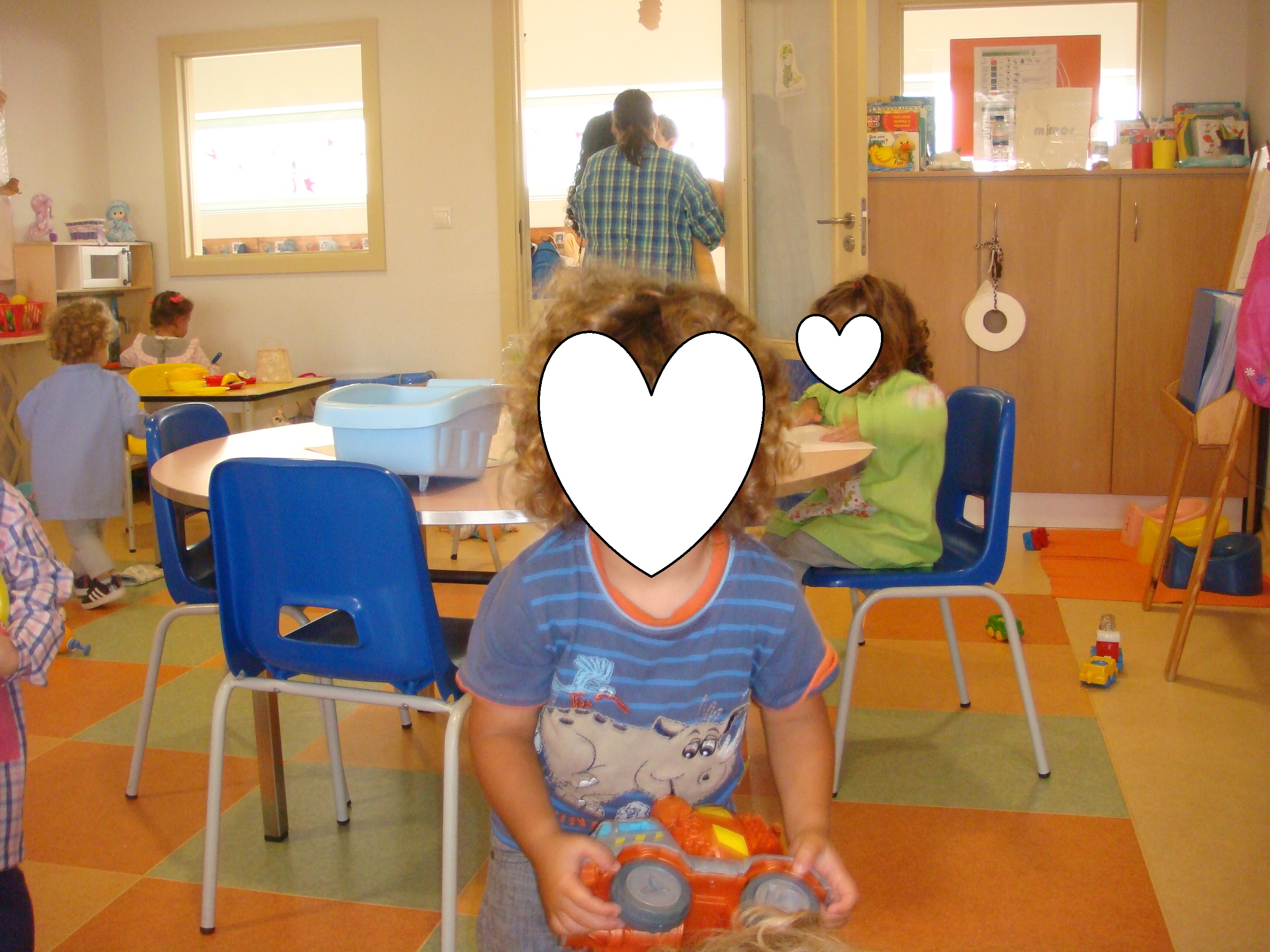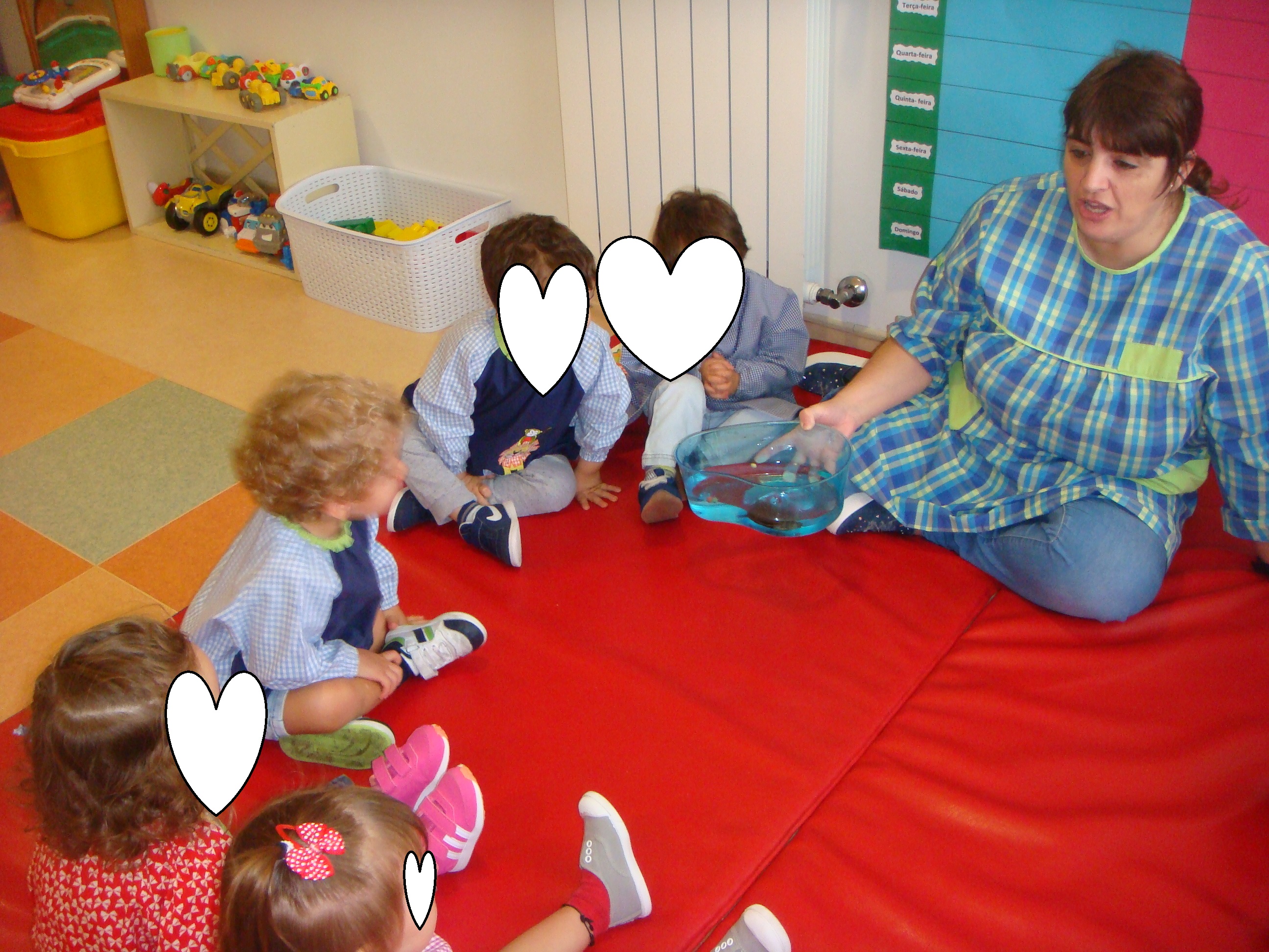 Neste mês de Outubro entraram para a nossa sala três meninos novos, uma menina e dois meninos que são gémeos falsos. A Lorena adaptou-se muito bem, apesar de ter vindo de casa e ter estado sempre com a sua mãe, o Tomas e o Byrne foi um pouco mais difícil nos primeiros dias, o que é normal, pois vieram de outro país, mesmo assim tem corrido muito bem agora, já não ficando para chorar e andando bem-dispostos o resto do dia.
