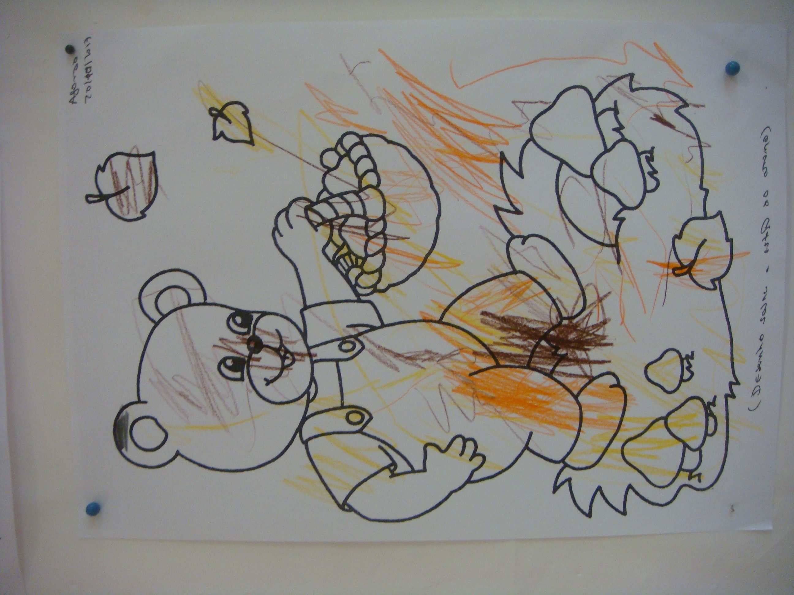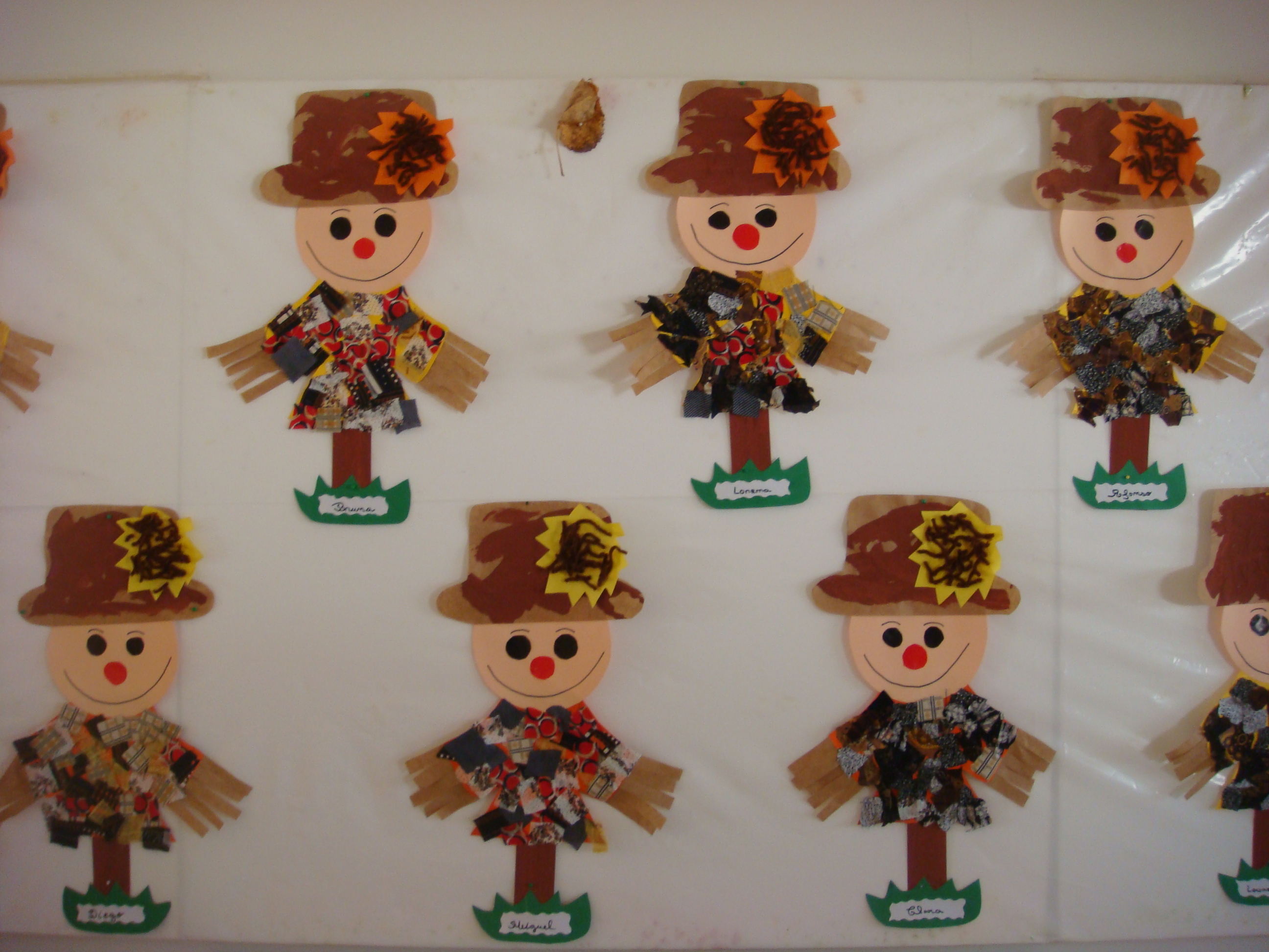Continuámos a trabalhar o Outono realizando espantalhos com diferentes materiais e pintando também um desenho sobre esta estação. Nós mostramos interesse em participar nas atividades plásticas.