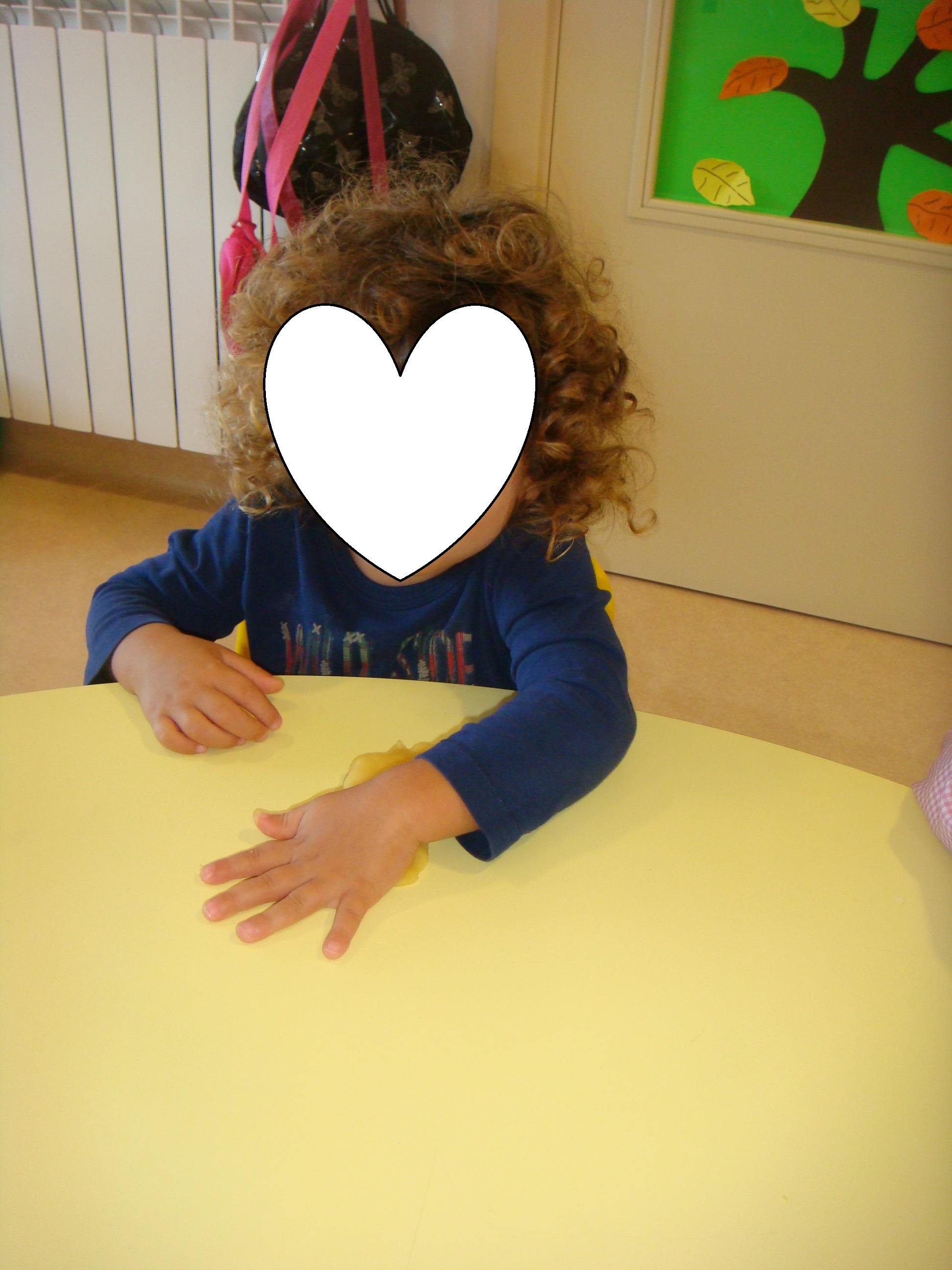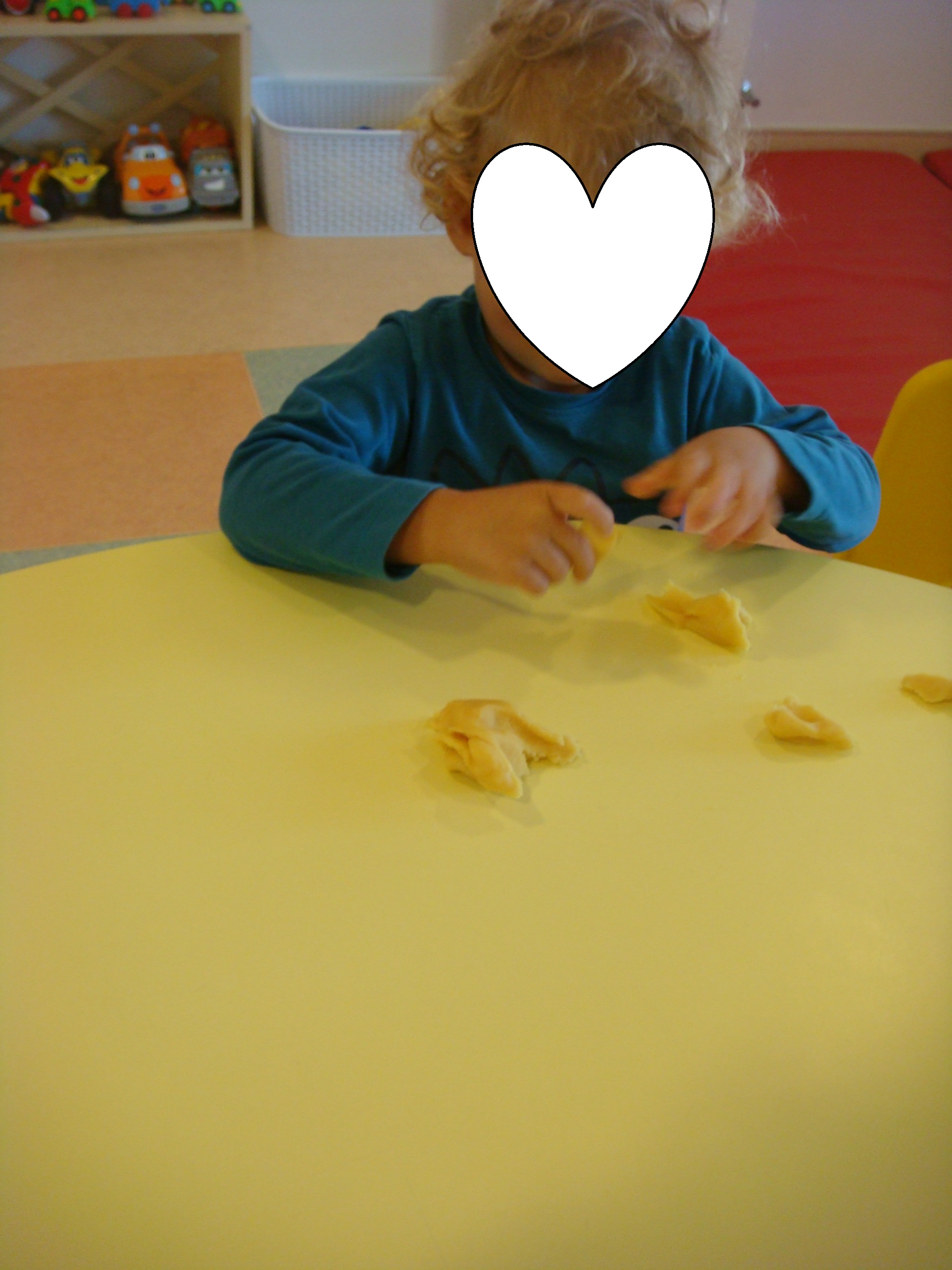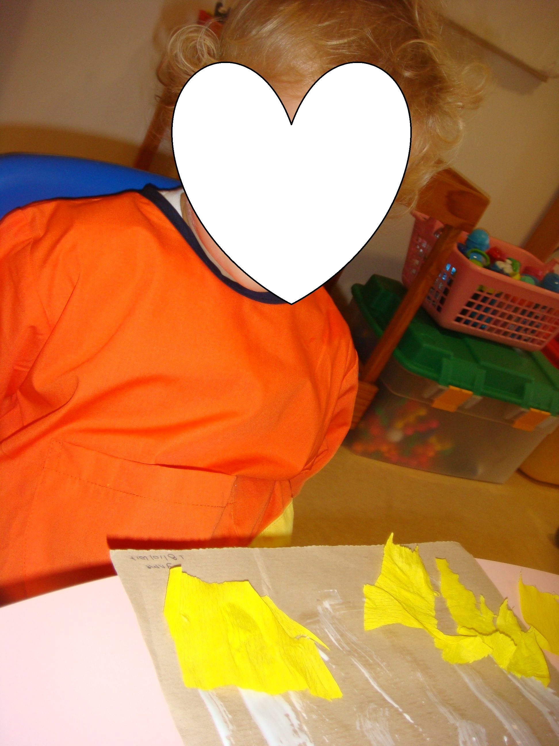 Temos estamos também a trabalhar as cores, neste caso a cor amarela, fizemos rasgagem com papel de seda e a mãe do Byrne e do Tomas fez-nos massa de farinha amarela para nós brincarmos. Nós gostamos muito. Obrigada pela sua ajuda e participação.