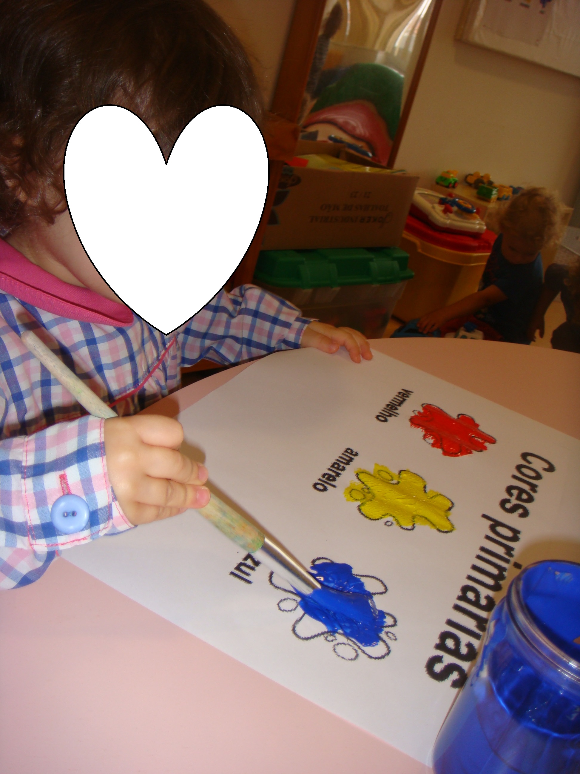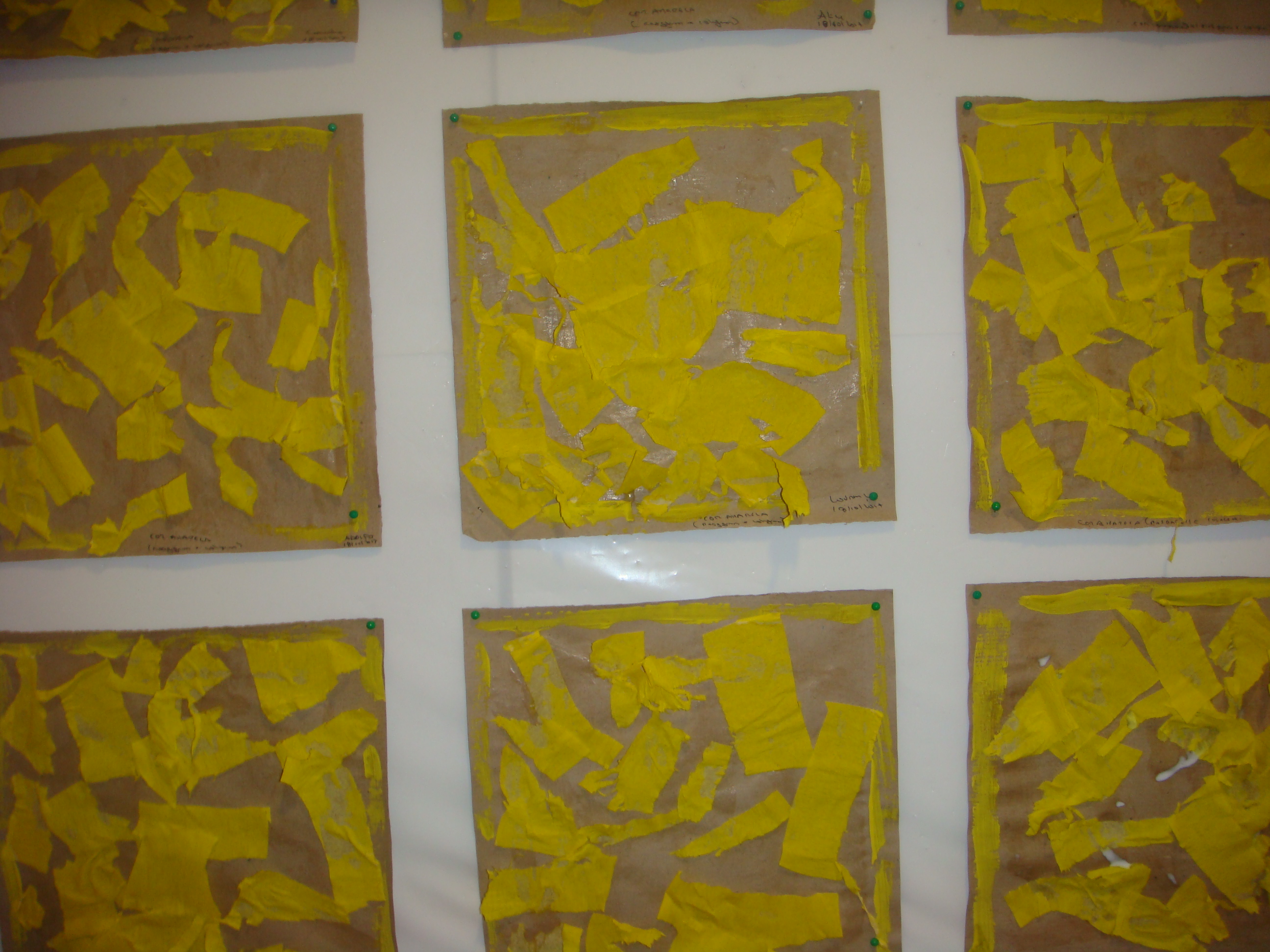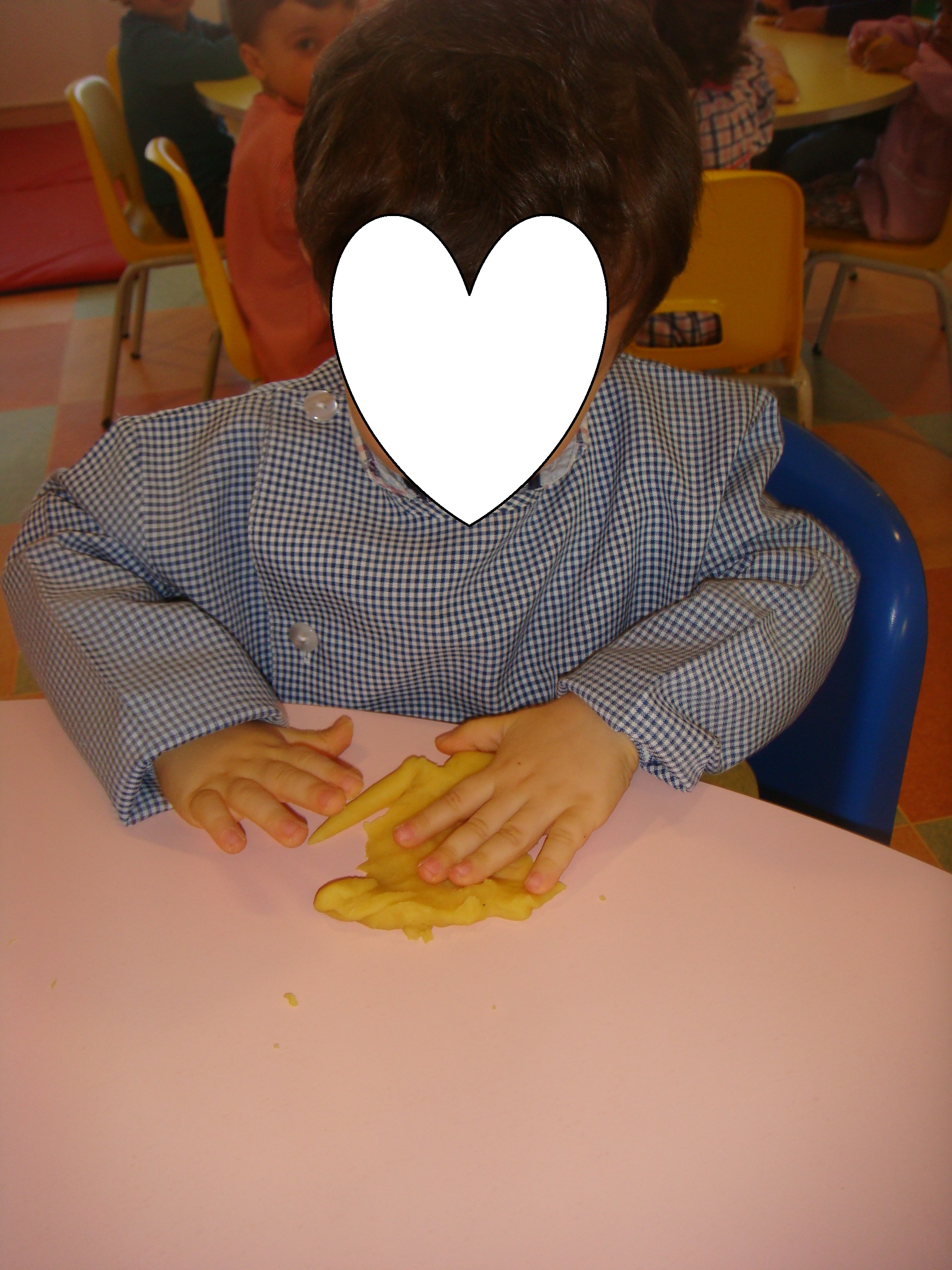 Temos estamos também a trabalhar as cores, neste caso a cor amarela, fizemos rasgagem com papel de seda e a mãe do Byrne e do Tomas fez-nos massa de farinha amarela para nós brincarmos. Nós gostamos muito. Obrigada pela sua ajuda e participação.