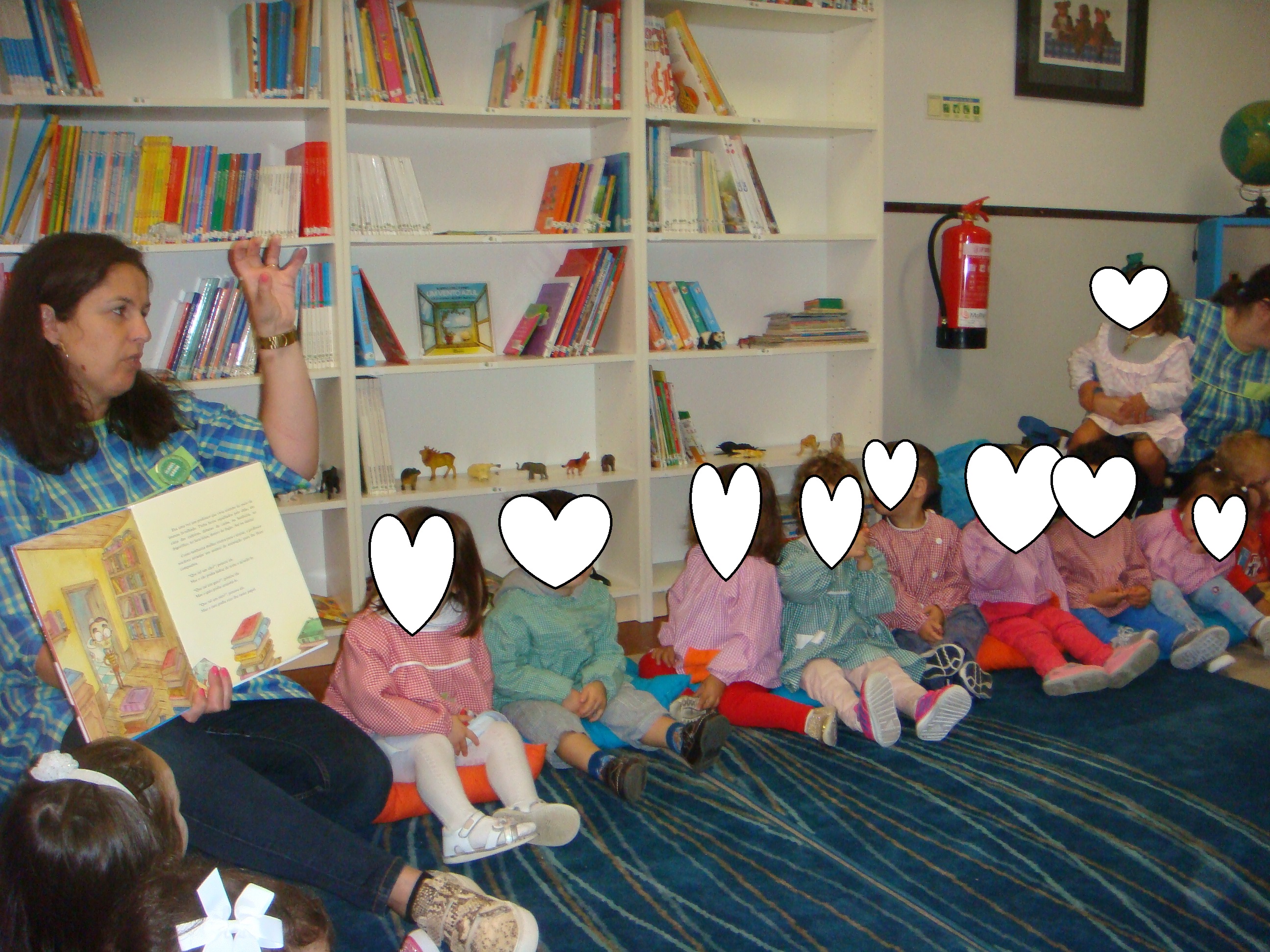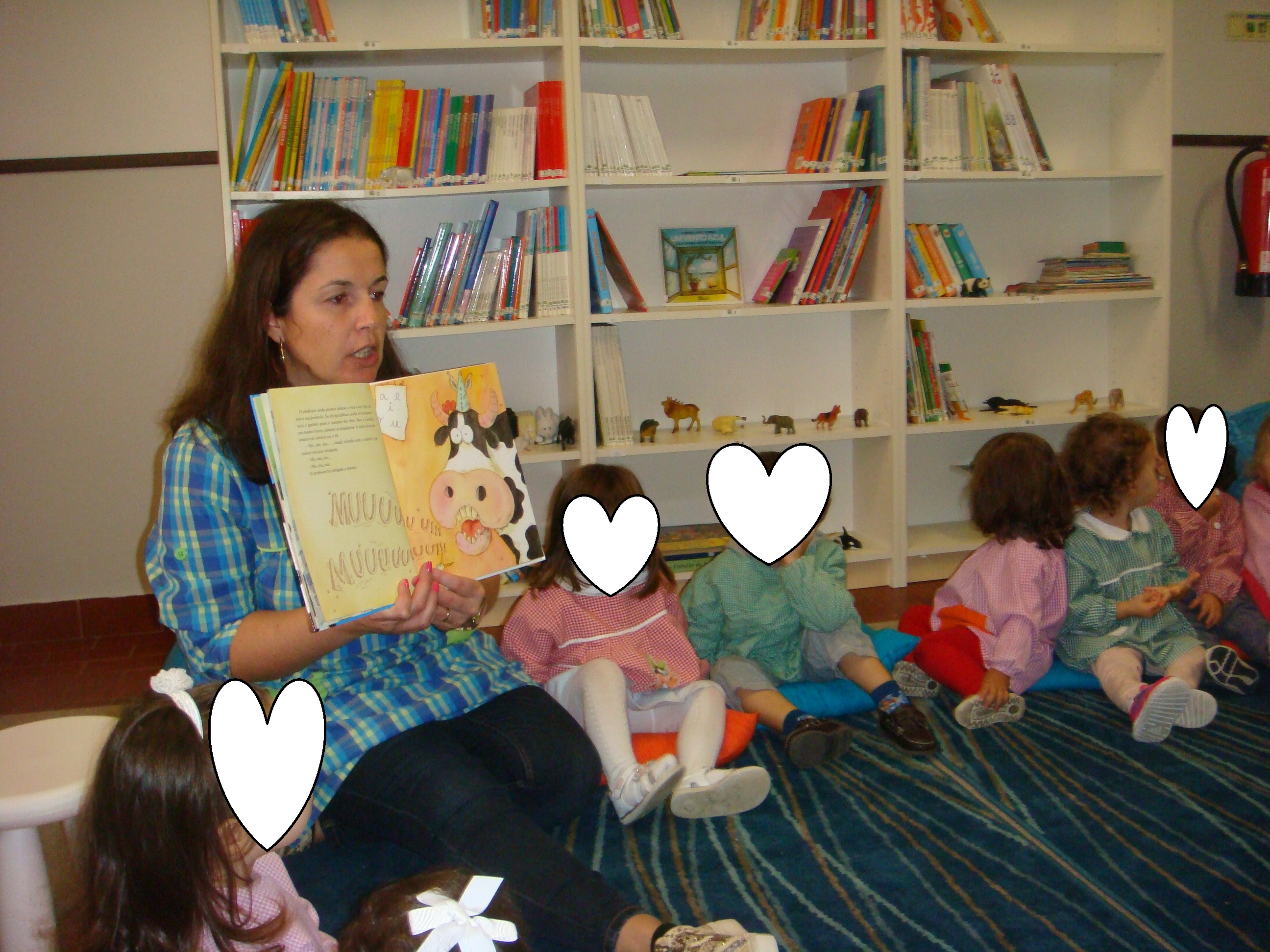 Fomos também à biblioteca da nossa escolinha ouvir a história que a educadora Isabel que era ” a vaca de estimação”. Gostámos muito e estivemos atentos. No final, a educadora Isabel fez um jogo com animais e nós já conhecemos alguns. Foi muito divertido, até porque é uma coisa diferente e um novo espaço, novidade para nós. Depois na nossa sala, fizemos um desenho sobre a história. Alguns de nós conseguiram dizer do que falava a história.