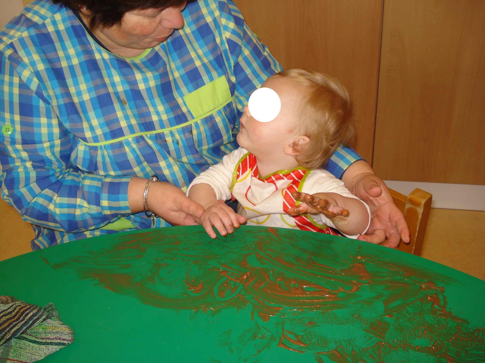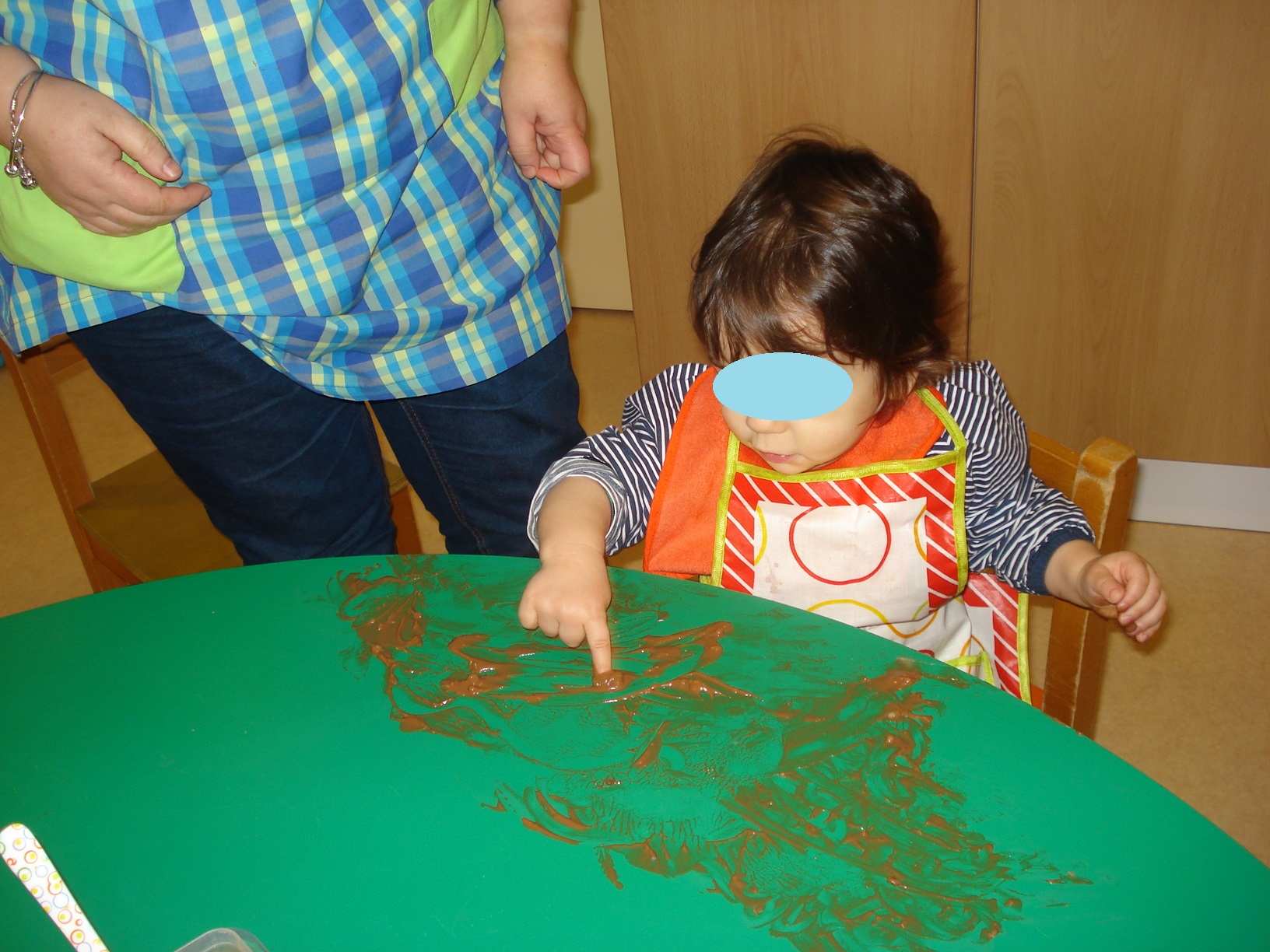 Pintamos uma árvore com carimbagem e colamos-lhe brilhantes, com digitinta de chocolate, exploramos e pintamos renas para pendurar na sala.