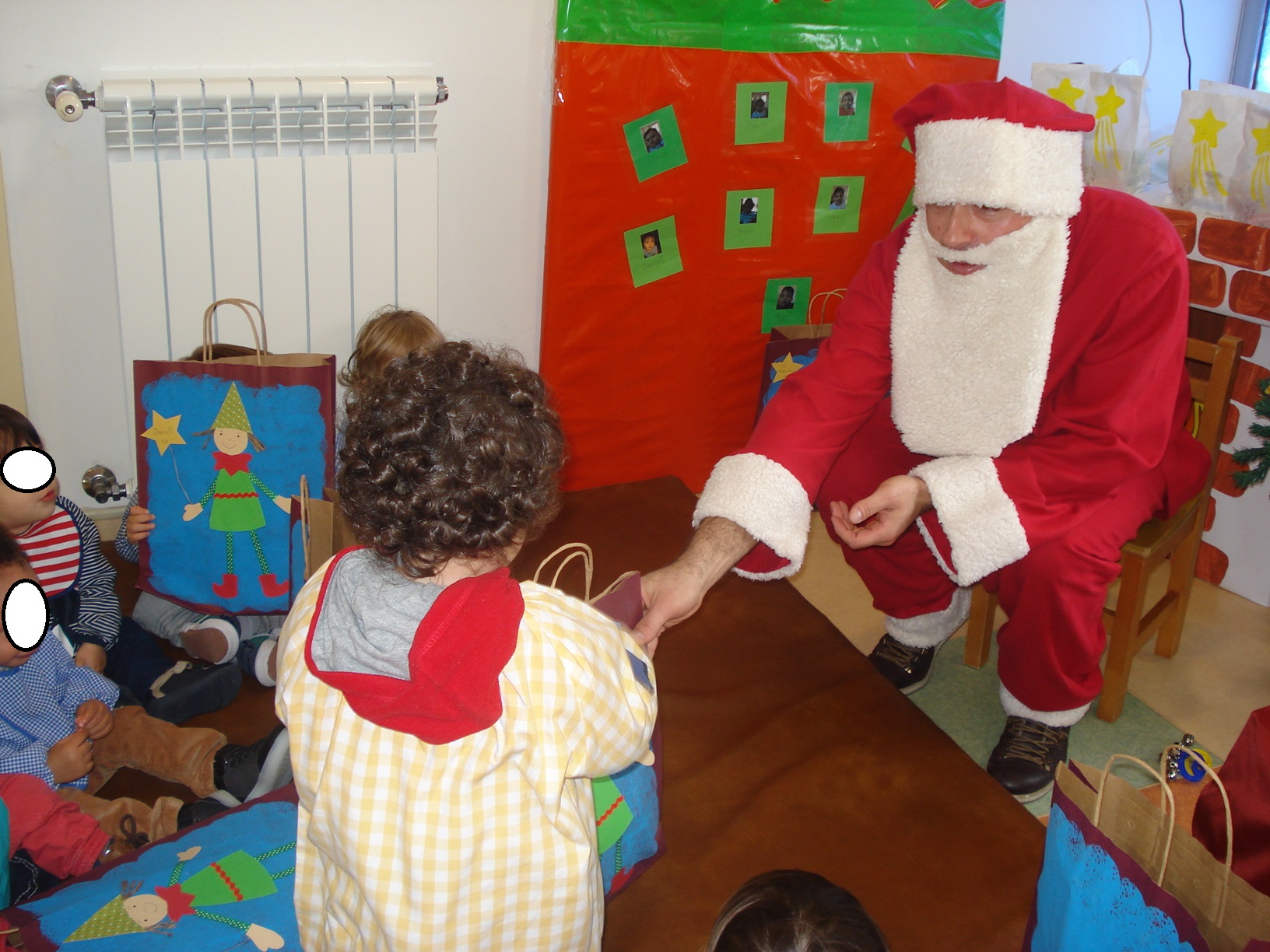 O Pai Natal veio-nos visitar e alguns de nós, tiveram um pouco de receio, mas afinal o Pai Natal até era simpático e trouxe-nos uma prenda, um puzzle, à tarde fomos assistir à festa, alguns com os pais, outros com a Guida e com a São.