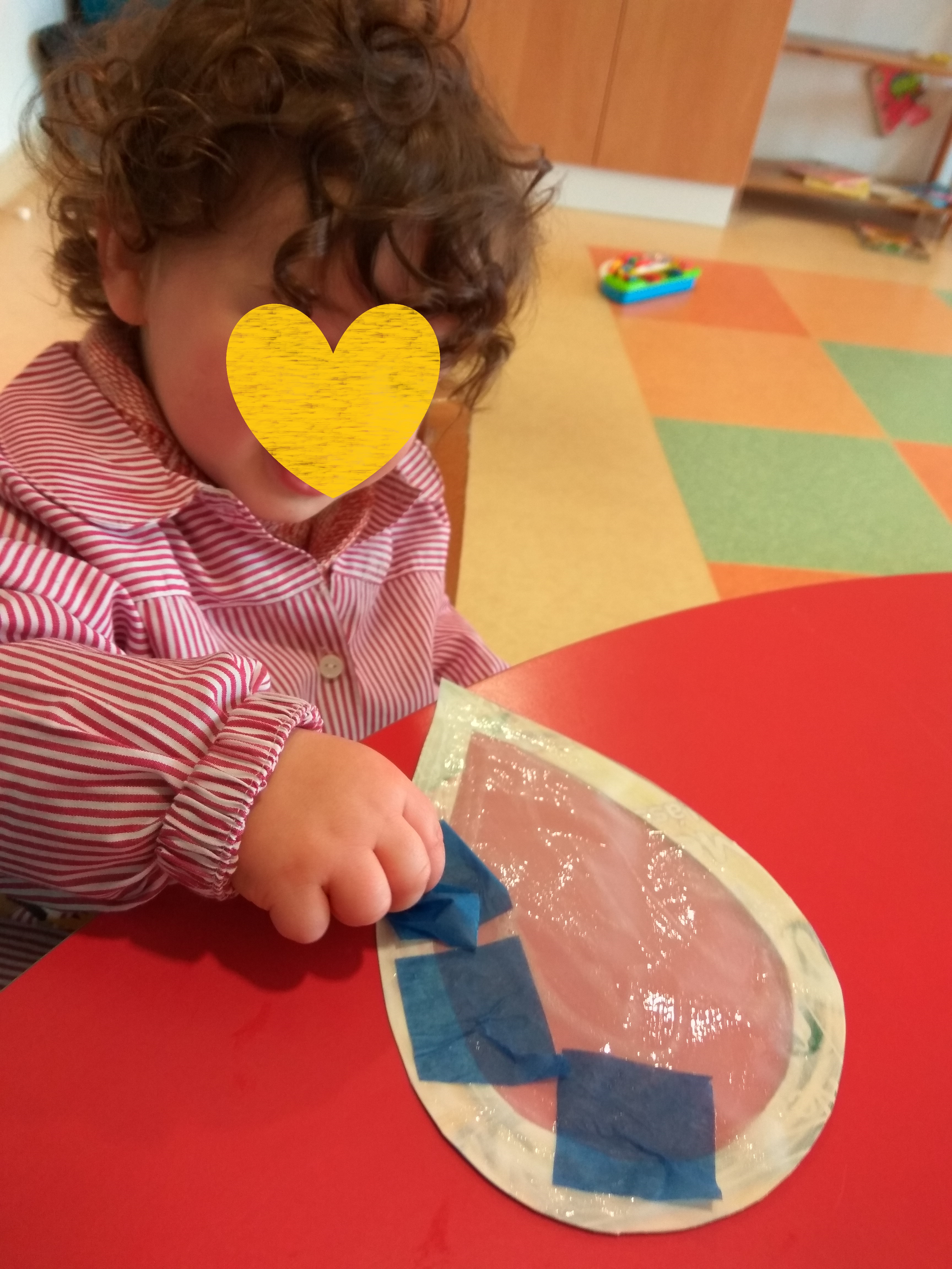 Para as gotas colmos bocadinhos de papel de seda, e já conseguimos fazer a pinça com alguma facilidade.
