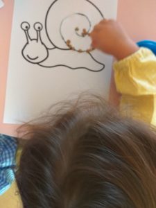 Como o nosso projeto está mais direcionado para os animais, e como tivemos a visita de caracóis, que são animais mais visiveis nesta altura do ano, decidimos fazer caracois para a decoração da nossa sala. Primeiro trabalhamos a motricidade fina ao fazer bolinhas de varias cores, para depois colar na espiral da concha do caracol. Depois cada criança pintou com pincel.