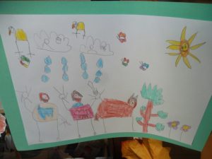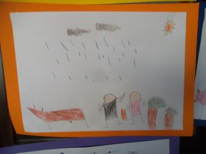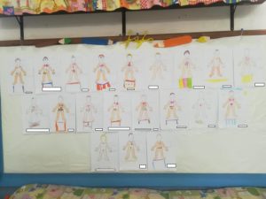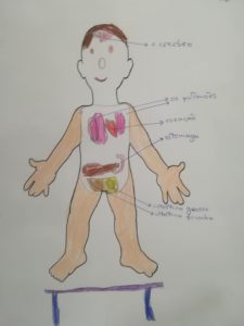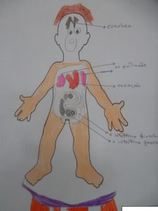 Cada criança aplicou o que aprendeu com esta atividade e em atividade de sala desenhou os principais órgãos do seu corpo.