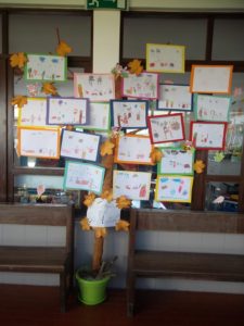 Na nossa sala fizemos desenhos sobre a lenda de São Martinho e decorámos a nossa árvore temática com os nossos desenhos e ficou bem bonita.