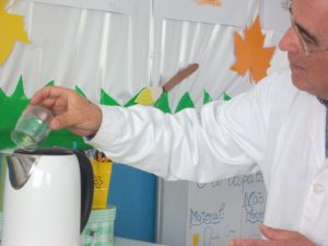 O avô da Sofia Matias veio à nossa sala dinamizar o dia das ideias com a Patrulha dos Amigos. Foi uma manhã muito divertida cheia de novas aprendizagens sobre a água e o seu ciclo tão importante para a nossa existência como seres vivos. O avô começou por nos mostrar o seu laser com o qual nos contou a história de uma gotinha de água e depois ensinou-nos a canção do ciclo da água. Na sala mostrou-nos duas experiências, que nos entusiasmaram muito e nos ensinaram coisas importantes sobre a água.