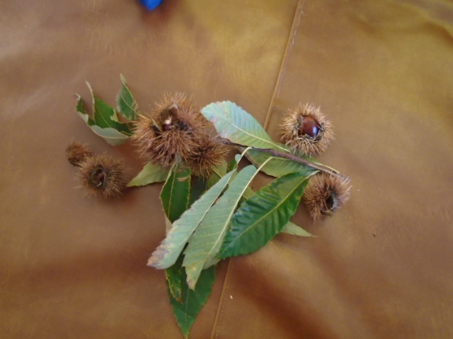 Ainda pudemos mexer nos ouriços e nas castanhas, mas os ouriços picavam!