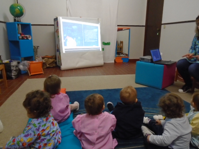 Fomos também este mês à biblioteca da nossa escola pela primeira vez! Escutamos a história “Feliz Natal lobo mau” que a educadora Isabel nos contou e portámo-nos muito bem.
