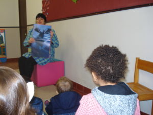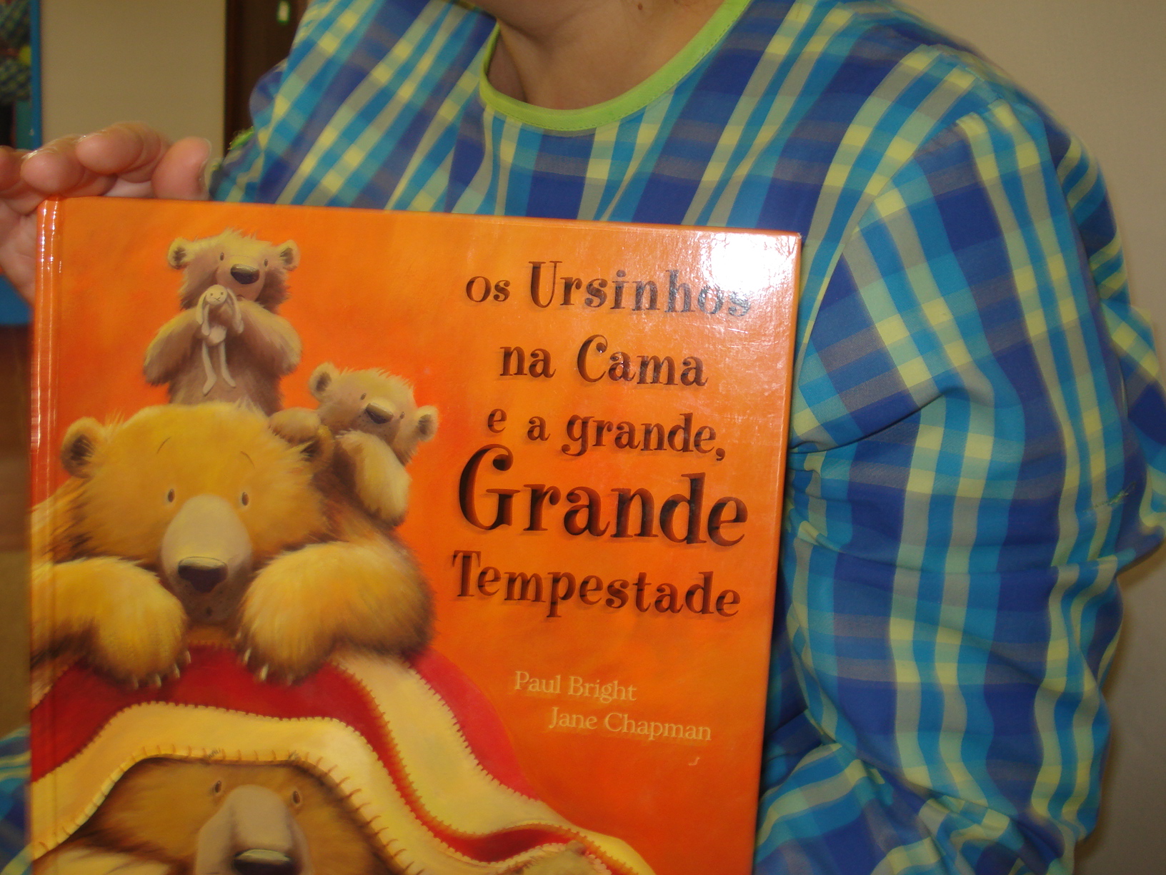 Fomos à Biblioteca ouvir a história “Os ursinhos na cama e a grande tempestade” contada pela Educadora Sandra, estivemos muito atentos.