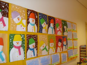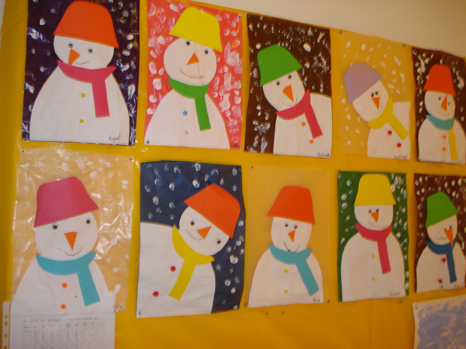 Entretanto começamos a falar do Inverno e das características desta estação do ano, da chuva, da neve, do frio e do que precisamos para ficarmos quentinhos. Fizemos um boneco de neve no qual tínhamos de colocar alguns elementos, olhos, nariz, boca, chapéu, etc.