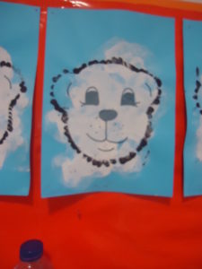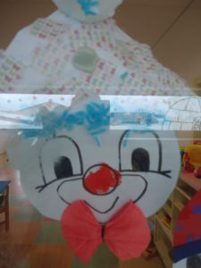 Concretizamos algumas actividades de colagens e de carimbagens com rostos de palhaços.