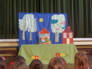 O teatro veio à nossa escolinha com a peça: “os três porquinhos e só um lobo”- foi muito divertido!