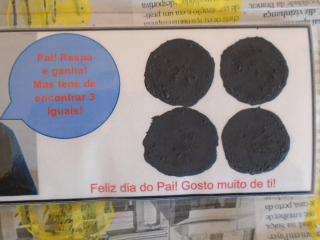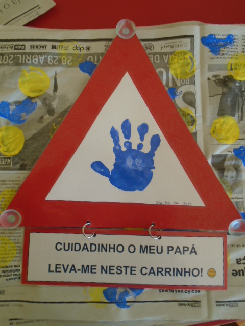 Este mês estivemos a preparar a prenda para o nosso pai! Fizemos um triângulo para o vidro do carro com o carimbo da nossa mão e fizemos uma raspadinha. Querem saber qual o prémio que saiu? Foi um beijinho! Papás o que acharam?