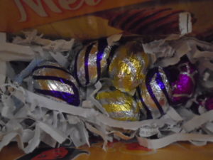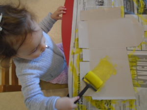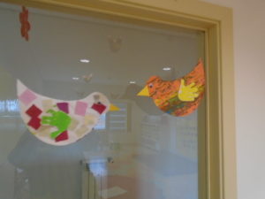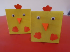 Fizemos também uma lembrança de Páscoa para levar para casa, pintámos uma caixa vazia das papas e transformamos numa galinha. Lá dentro havia uma surpresa docinha!