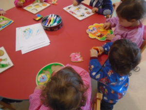 Estivemos também a brincar com puzzles na mesa e gostámos bastante, alguns de nós já conseguem muito bem encaixar as peças.