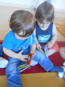 Também explorámos muitos livros novos, livros pequeninos com imagens das primeiras palavras que devemos dizer. Estivemos todos muito interessados nas nossas leituras.