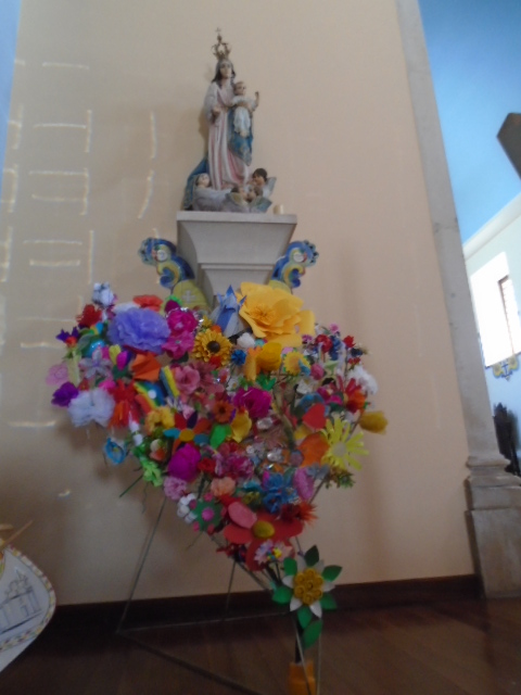Com as flores de todos decorámos um coração gigante que ficou junto à imagem de Maria.