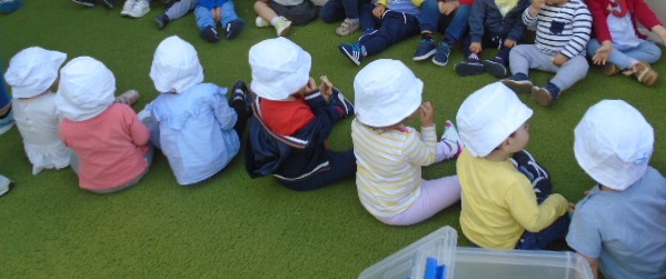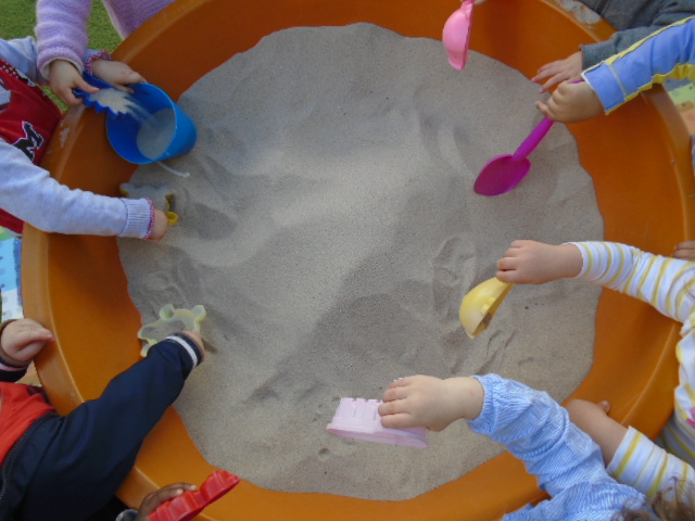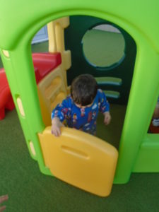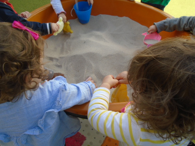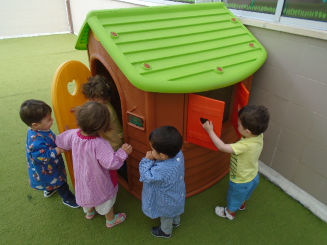 Com o tempo bom que tem estado já começámos a vir cá a baixo à relva brincar nas casinhas e nos escorregas e também brincámos na caixa de areia.