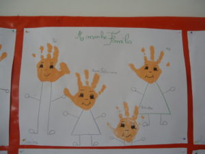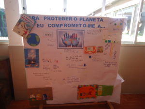 Para a semana “Ambiental”, carimbámos as mãozinhas das crianças e colámo-las num grande placard para “atrair” a atenção dos pais para que estes deixassem uma mensagem a comprometerem-se com a defesa do nosso planeta Terra.