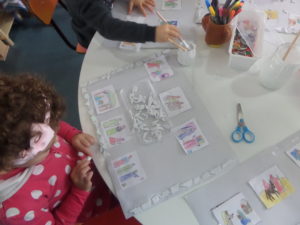 O dia do pijama chegou finalmente e conseguimos ver o “nosso pássaro azul” – que aparece sempre que estamos confiantes, felizes e confortáveis! Dançámos a música da missão pijama e, com a ajuda dos nossos pais, fizemos um mural intitulado: “um país precisa de crianças”