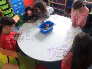 Fizemos jogos e trabalhinhos a partir de sons – fonemas – porque somos finalistas e ainda há alguns meninos que pronunciam mal alguns sons! – rimas, divisão silábica, etc. –