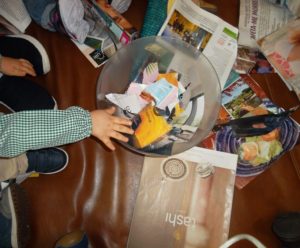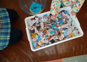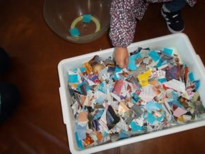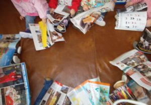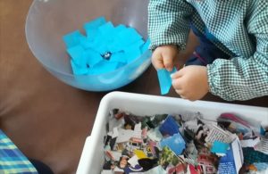 O nosso espaço da conversa é um dos mais importantes da nossa sala, porque é nele que muitas das nossas aprendizagens começam e se desenvolvem, e desta vez estivemos a rasgar bocadinhos de revista para podermos construir uma brincadeira que todos gostam “Vamos descobrir as cores”.