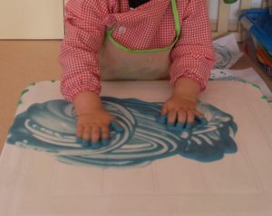 Explorámos digitinta azul, que além de ser uma atividade sensorial tão importante na nossa idade, também nos ajuda a estimular a habilidade e agilidade manual.