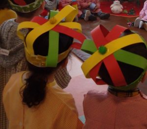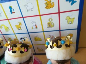 No dia de Reis recebemos pela primeira vez visitas na nossa sala e quisemos estar à altura dos nossos amigos. Colocámos as nossas coroas na cabeça e pegámos nos instrumentos que os nossos pais nos construíram para podermos tocar com os nossos amigos da infantil, que tão gentilmente nos vieram desejar um bom ano. Fartámo-nos de tocar os nossos instrumentos a acompanhar os nossos amigos. Foi uma manhã inesquecível.