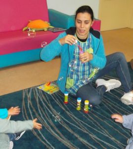Foi uma manhã divertida, ouvimos a história e depois divertimo-nos com a surpresa que a educadora Liliana nos preparou: apanhar bolinhas de sabão, que também nos ofereceu para nos divertirmos na sala.