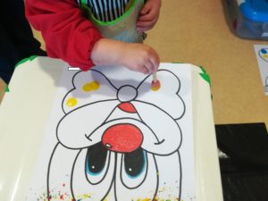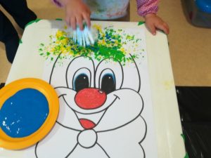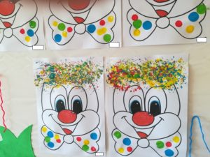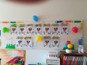 O Carnaval é cor é alegria é diversão e com os copinhos dos nossos iogurtes pintámos o cabelo de uns divertidos palhaços para decorar o nosso placar. Todos se entusiasmaram ao ver que os nossos copinhos também pintam. Com os nossos carimbos de esponja demos cor aos laços dos divertidos palhacinhos, que tornaram o nosso placar colorido e divertido.