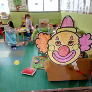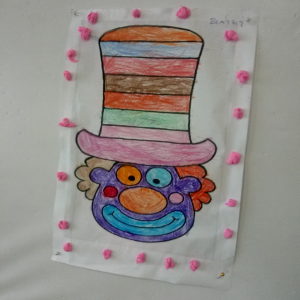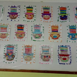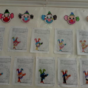 Para decorar a sala para o Carnaval fizemos palhaços com colagens e atividades de contagem de números.