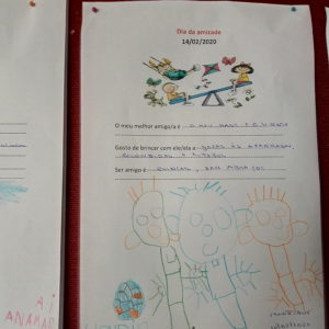 Para o dia da amizade, cada um de nós fez um desenho sobre o seu melhor amigo/a e o que significava ser amigo. Foram respostas engraçadas que demos.
