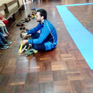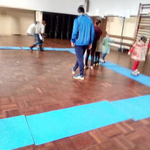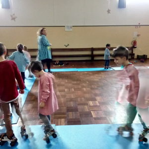 Vieram também ao salão fazer uma demonstração de patinagem que tinha a ver com hóquei. Foi mesmo divertido andar de patins, gostámos tanto.