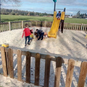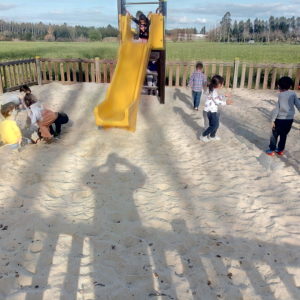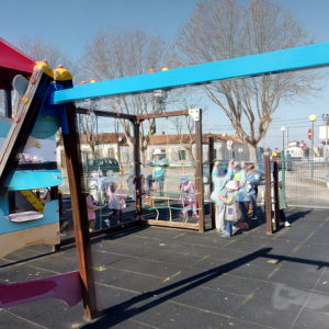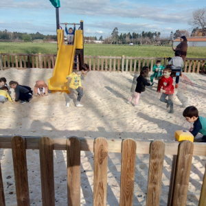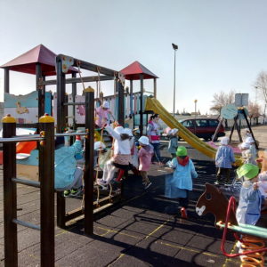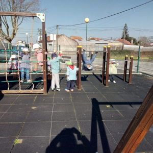 Aproveitamos também o bom tempo para ir ao parque ao pé da nossa escola. Foi espetacular, faz bem sair e brincar no exterior.