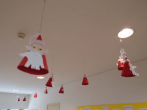 Olá a todos! O mês de dezembro passou a correr, mas fizemos muitas coisas! Decorámos a nossa sala com pais natais pendurados, a barba era o contorno da nossa mão!