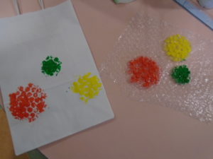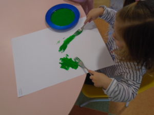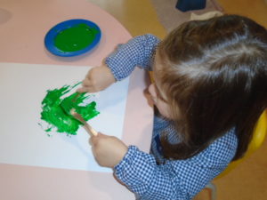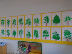 Fizemos também para o placard da nossa sala árvores de natal com pintura com garfos. Vejam como ficaram as nossas árvores.